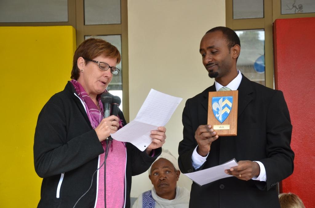 Styremedlem i WSG-Norge og lærer ved Svinndal skole i Østfold, Inger O. Hovland, var stolt over å være med på åpningen av den nye skolen. –Svinndal skole støtter 14 av elevene gjennom et personlig fadderskap, og dermed har vår lille skole i Norge en ekstra klasse i Addis Abeba, sa hun. Fra Svinndal ble det overrakt både kommunevåpen fra Våler kommune og mye sportsutstyr for bruk ved skolen