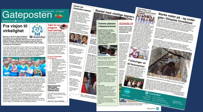 Neste år er det 25 år siden Gatefolket ble etablert som en støtteforening for organisasjonene Bright Star, Win Souls for God og Hope for Children i Etiopia. Jubileet skal selvsagt markeres, først og fremst for å inspirere oss alle til videre innsats under visjonen «fra gatebarn til skolebarn».