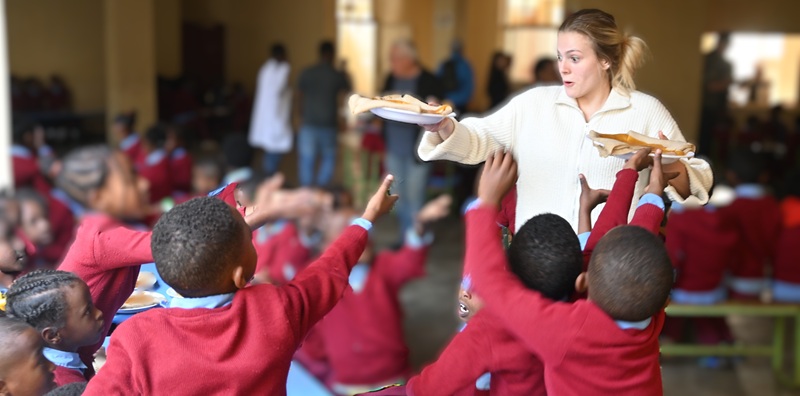 Thale Mingeødegård fikk sin fulle hyre med å servere lunsj til skolebarn på Entoto-skolen.